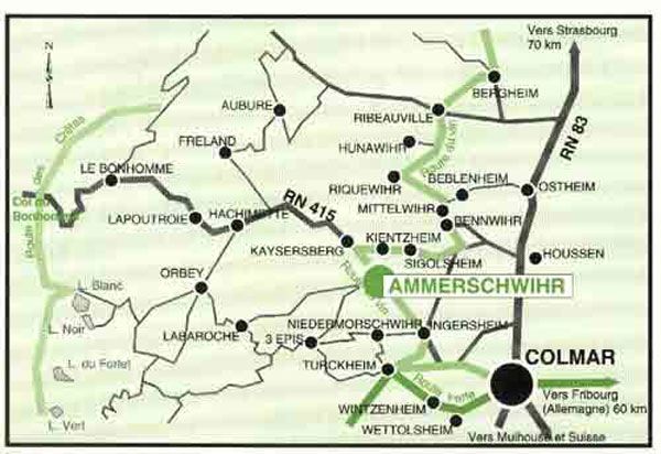 A 10 km à l'ouest de Colmar et 3 km de Kaysersberg. Venant de Mulhouse par l'autoroute A 35, rester sur le contournement de Colmar en direction de Strasbourg, prendre la sortie 23, direction Houssen, Benwihr, Sigolsheim, Kaysersberg.
